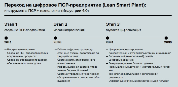 В рамках Lean Smart Plant предприятиями отрасли при поддержке проектного офиса ПСР, департамента информационных технологий и департамента цифровой трансформации разрабатывается дорожная карта создания цифровых ПСР-образцов на промышленных предприятиях атомной отрасли. К марту 2021 года развитием цифрового бережливого производства занималось уже 20 предприятий, входящих в контур Росатома.